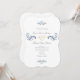 Denna sofistikerade vintage-barocka bröllopsinbjudan har en vit bakgrund, vackert förstärkt med mjuka dammiga blå blommotiver och ett romantiskt gyllene rep-hjärta. Anpassa den genom att lägga till en QR-kod för RSVP och din bröllopswebbplats för ytterligare information. En fantastisk fusion av tidlös elegans och mjuk, romantisk charm, den skapar den perfekta introduktionen till en förfinad och minnesvärd firande.