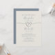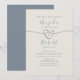 Fira din kärlek med denna eleganta dammiga blå bröllopsinbjudan, med en minimalistisk layout, romantiska typsnitt och en delikat silverrep hjärtsymbol. Med en mjuk, neutral bakgrund och tidlös typografi är denna design perfekt för efterbröllopsfirande, moderna bröllop eller intima sammankomster. Ett förfinat sätt att säga ”Vi har bundit oss!”—idealiskt för par som söker en ren och hjärtlig inbjudan till mottagningen.