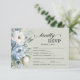 Elegant dammig blå och vit akvarell blomster- och grönska botanisk akvarell bröllop RSVP-kort med en salvia grön bakgrund. Varje bröllop och par är unikt, så dina RSVP-kort bör också vara det! Tveka inte att kontakta mig för hjälp med att anpassa dina kort för att perfekt matcha din speciella dag.