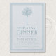 Bjud in gäster att fira starten på din bröllopshelg med denna eleganta kustinspirerade repetitionmiddagsinbjudan, med en tidlös illustration av ett palmer och förfinad dammig blå typografi. Designad med detaljerad lagerkant och klassisk layoutstil, fångar denna inbjudan den avspända sofistikeringen hos en kustfirande. Perfekt för strandbröllop, kustnära herrgårdar och sydliga destinationsevenemang, frammanar denna design charmen hos ikoniska kustnära evenemangslokaler - från trädgårdar i Charleston till semesterorter i Palm Beach. De mjuka blå nyanserna och palm-motivet skapar en polerad men luftig estetik som känns både klassisk och otvungen stilfull. Idealiskt för par som planerar en förfinad kustnära bröllopshelg,