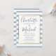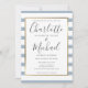 Elegant dammig blå randig bröllopsinbjudan med signaturstilnamn, denna stilrena bröllopsinbjudan kan anpassas med din information i chic bokstavsstil. Designad av Thisisnotme©