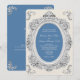 Gör din speciella dag oförglömlig med vår lyxiga vintage barock rokoko elfenbensvita och dammiga blå bröllopsinbjudan. Denna eleganta design har intrikata viktorianska blomsterdetaljer som sömlöst kombinerar förfinad sofistikation med tidlös charm. Den mjuka elfenbensvita och dammiga blå färgpaletten skapar en känsla av klassisk romantik, perfekt för par som söker en elegant och stilfull firande.