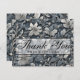Det här romantiska, dammiga silvergrå blå blomstermönstrade TACKKORTET är perfekt för vilken trädgårds-, botanisk, blomster-, romantisk, utomhus-, rustik, vintage- eller formell bröllop som helst. Gör det enkelt till ditt eget genom att välja Anpassa denna mall och skriva in din information. Inom några sekunder ser du ditt unika och fantastiska tackkort!