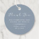 Elegant vit " tack "-skrift på trendiga enfärgade dammiga blå bakgrunder med vintage deco- accent, personliga tacksamtillbehörsetiketter.
