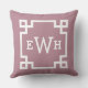 Elegant dammig rosa grekisk nyckelmonogram initial kudde
