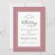Spara datumet för vårt bröllop i vacker trendig dammrosafärg. Inbjudan har en elegant bröllopsdesign. Chic kalligrafi och typsnitt är gjort i kolgrått på en krispig vit bakgrund med accentuerad stor dammrosa ram. Lägg till er bröllopsdatum, namn, stad och stat för att färdigställa designen. Baksidan av kortet matchar i enfärgad dammrosa.