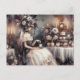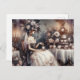 This postcard features a captivating watercolor illustration of an elegant lady. Dressed in a flowing white gown and adorned with a delicate floral hat, she is beautifully positioned against a dark and moody tea party backdrop. The design's versatility makes it ideal for a bridal tea thank-you card or any other special occasion, adding a touch of timeless elegance to your message.