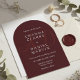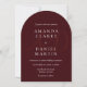 Elevate your wedding day with this deep burgundy arch wedding invitation, designed for couples who love timeless elegance with a modern edge. Featuring a classic arch silhouette in rich, deep burgundy — the jewel tone of the season — this design includes personalized couple initials as a sophisticated watermark in the background, adding a luxurious monogram touch without overwhelming the clean layout.