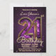 Celebrate in style with our stunning customizable 21st birthday invitation, designed to make your milestone moment unforgettable. Picture this: a luxurious purple gemstone, sparkling with the brilliance of a thousand stars, gracefully adorning the front of your invitation. The number "21" is prominently displayed in a dazzling, faceted pattern that catches the eye and exudes elegance, wrapped in a golden embrace that adds a touch of sophistication to your celebration.
