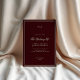 Introduce your celebration with this classic burgundy and ivory formal wedding piece featuring refined typography and a traditional double-frame layout. The deep burgundy background paired with soft ivory detailing creates a look that feels timeless, elegant, and stately, ideal for black tie weddings, evening ceremonies, and formal celebrations. Designed for couples drawn to traditional sophistication and enduring style, this piece sets a polished tone rooted in romance, heritage, and understated elegance.