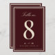 Add a polished finishing touch to your reception with this burgundy and ivory wedding table number featuring elegant typography and a rich, classic color palette. The deep burgundy background paired with soft ivory lettering creates a look that feels timeless, refined, and sophisticated, perfect for formal weddings, black tie celebrations, and fall or winter events. Designed to complement classic and elegant wedding styles, this table number brings understated luxury and visual cohesion to your reception tables.