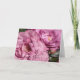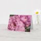 Ett vackert födelsedagskort med en mjuk rosa ros i fullt-blomma omgiven av lövliknande gröntar. Anpassa efter behov.