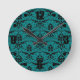 Elegant Deep Teal Black Damask Pattern Rund Klocka
