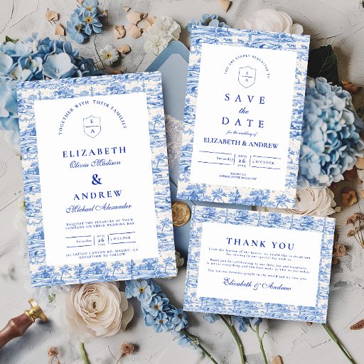 Elegant Delft Blå Chinoiserie Bröllop Spara Datumet