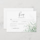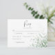 Öka din bröllopsdag med det tidlösa skönheten hos vårt känsliga svarskort från bröllop med middagsalternativ. Mot en pristinvit bakgrund skrapas den lämnat sidan på ett skonsamt sätt av mjuka vattenfärgsstammar av mjuk grönt, vilket skapar en exquisitet och elegant visning av naturens nåd. Den här designen fångar det centrala i den ekologiska elegansen, och lovar att locka dina gäster och ange perfekten för din speciella dag. Låt din kärlek-historia upplösas mitt i naturens finaste lugn. Skapat av Farmhouse Press, det är en del av Eleganten Delikat Greenery Ferns bröllop samling.