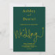 Denna eleganta gröna och gyllene bröllopsinbjudan är perfekt för ett modernt bröllop. den enkla designen har elegant guld kalligrafi på en grön bakgrund.