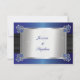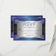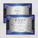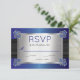 Svarskort från bröllop med briljant sofistikerad och snyggt, med tryckt faux sapphire blue-satébakgrund och svart satin-band med diamanter och safira hörnklämmor. Faux svarta band, safir- och diamantklaspar och övertoningssafir-bakgrund fortsätter på baksidan för ett polerat, sofistikerat utseende. Ursprunglig design efter Helgdag Hearts Designs (alla höger reserverade). Observera att alla meddelanden är tryckta.