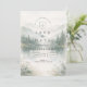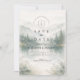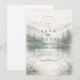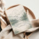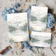 En lugn och stämningsfull design inspirerad av dimmiga bergslandskap och tysta skogsmiljöer. Mjuka akvarellskikt av tallar och avlägsna kullar tonar försiktigt in i bakgrunden och skapar djup och en lugn, romantisk stämning. Den dämpade paletten av salvia grön, sval grå och mjuk elfenben ger designen en raffinerad, naturdriven elegans – perfekt för par som dras till minimalistisk estetik och intima utomhusfiranden.