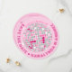 Notera bröllop i stil i klarsynt disco. Denna energiska disco boll bröllop spara datum utstrålar groovy elegance. Den här roligten runt bröllop spara datum har en lysande diskotek boll som cirkuleras av Save THE DATE och ditt namn. Ett invändigt bågsektioner markerar datum och plats. Rosa och shock rosa i ljus rosa bakgrund - detta datum är utmärkande och fungerar för ett elegant- eller tropiskt diskotema. Retro 70-talets typsnitt lägger till en groovisk beröring. På baksidan finns utrymme för ytterligare meddelanden och en QR-kod för webbplatsen bröllop. All text är personlig åt dig.