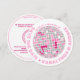 Från och med att de öppnar kuvertet kommer dina gäster att känna av roligten energi från ert disco bröllop. Den här rundan i bröllop spara datum har en lysande disco boll som cirkuleras av Save THE DATE och ditt namn. Ett invändigt bågsektioner markerar datum och plats. Roligt och elegant i nyanser av rosa och rött på vit bakgrund, detta datum är utmärkande och fungerar för alla diskotema eller reflexer bröllop. Retro 70-talets typsnitt lägger till en groovisk beröring. På baksidan finns utrymme för ytterligare meddelanden och en QR-kod för webbplatsen bröllop. All text är personlig åt dig.