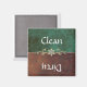 Söt grönt och brunt dammmagnet, med grönt, överst och en brunkolsliknande elegant, på grund. Grafik av en guld-tonsjevel-dekoration, i mitten. Vit text står Rengör och Dirty. Gör en underbar värdinna-gåva.