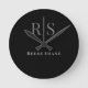 Elegant DIY grå monogram och vit namn, svart Rund Klocka