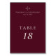 Klassisk bröllopsbordnummer med en enkel men elegant design i en djup burgunderfärg som är perfekt för ett höstbröllop eller ett vinter/julbröllop.