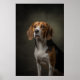 A stunning studio portrait of a dog illuminated with dramatic Rembrandt lighting. This elegant composition gives the image a timeless, noble quality, making it perfect for pet lovers and interior art collections.