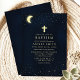 Meddela om dopet av din baby med denna eleganta nattliga himmel-design med en lugn mörkblå bakgrund prydd med tindrande stjärnor, en halvmåne och ett framträdande kors. Den himmelska designen skapar en lugn och sofistikerad atmosfär, perfekt för både pojkar och flickor. Idealisk för en minnesvärd och andlig dopceremoni, denna design säkerställer att din speciella händelse tillkännages med grace och skönhet. Anpassa med dina evenemangsuppgifter för att göra den unikt din egen.