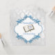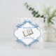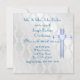 Vackra pojkbarn-inbjudningar för dop är bedårande med bibel och babyblå skor. Unik och elegant vit damaskdesign är en bra bakgrund för ett dop med blå kontur grafik av delightfuldoodles