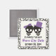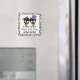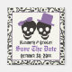 Elegant döskallar Halloween lila bröllop spara datum magnet, med ett svart skallparsbrid och stam på elfenbensbakgrund och en skalle mönster gräns. Gumman bär en lila hatt och muten lila båge. Vill du ha hjälp eller ett annat färg-program? Klicka bara på kontaktknappen under produkten och fråga efter den!