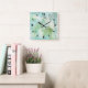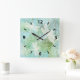 Dragonflugor och stampade Flowers Wall Clock in mjuka gröntar och blues med drakar och blommor från Jenns Emporium.