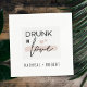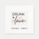 Få party att börja med de här "Drunk in Kärlek"-textade vita, minimalistiska anpassningsbar-cocktailservetter. Detta är perfekter för bröllop, förlovningar eller något särskilt tillfälle. Anpassa med lycklig parets namn och dejta en liten charm. Du kan också ändra färg i text och bakgrund. Ordna nu och gör din speciella dag ännu mer minnesvärd! Svart och vit minimalistisk "Drunk in Kärlek" Funny Personlig Cocktail Napkins för Bröllop Förlovningsfest | Vita Bröllop Napkins med Bride och Broom Namn