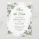 Elegant Dusty Blåa blommor Greenery Bröllop Spara Datumet