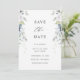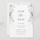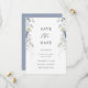 Elegant Dusty Blue and White Blommigt Bröllop Spara Datumet