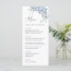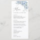 Berätta för dina gäster vad som finns på menyn med det här menykortet för elegant, med blommor och grönska i dammiga blå färg.