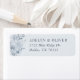 Lägg till ett vackert avslutande tryck till dina bröllop-utskick med den här returadressetiketten med blyhaltigt blåa blommor på en dammig blå bakgrund.