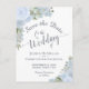 Elegant Dusty Blue Blommigt Bröllop spara datum Meddelande Vykort