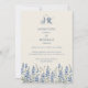 Elegantens enkla inbjudan till bröllopsbröllop med blommigt i monogrammet har en känslig Texas-blomma i vildblomman teckning med varm bakgrund och vackert dammiga blå stöd.