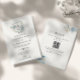 Fintvätt av vit och dammig blå blommigt i monogram vapensköld QR-kod allt i en bröllopsinbjudan.