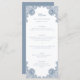 Elegant dammig blå bröllop-meny med dammig blå blommigt snöre. Matchande objekt är tillgängliga. Anpassa enkelt den här dammiga blå bröllop-menyn med dina bröllop-detaljer.