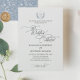 Elegant Dusty Blue Blommigt Vapensköld Monogram Br Inbjudningar
