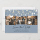 Fotot med dammig blå bröllop-personlig i elegant sparar datumkorten med en modern skripttitel. Bröllop spara datum har en fotokollage på 3 bilder mot en dammig blå bakgrund med strängen ljus på framsidan och ett foto på baksidan. Gör det enkelt att anpassa den här dammiga blått och spara datumkortet med dina uppgifter om bilder och bröllop. Om du vill ha anpassningsbar skickar du ett meddelande till oss via Zazzle-chattan.