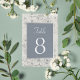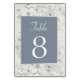 Boho, elegant, modernt, dammigt blått bröllop-bordsnummer med gyllene blommigt grått snöre.