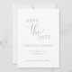 Detta enkla, minimalistiska kort för spara till datum är perfekten för att tillkännage ert kommande bröllop. Det här kortet har en dammig, blå och vit utformning med elegant text. Anpassa texten på kortets framsida och baksida med all information om din speciella dag. #savethedate #ourbröllop #minimalistbröllop