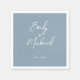 Elegant dusty blue wedding napkin featuring a beautiful combination of white calligraphy for your names with a modern font for your wedding date. A modern and stylish design which is a perfect way add a special and personal touch to your engagement party, rehearsal dinner or wedding reception.