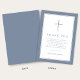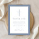 Elegant Dusty Blue Cross Boy First Communion Thank You Card.