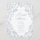 Announce your special day with an elegant traditional bridal shower invitation featuring a delicate, vintage-style floral border in soft dusty blue. Perfect for a formal or casual affair with a classic, timeless aesthetic. This refined design offers an opulent look. Created by Simply Farmhouse Press.