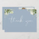 Featuring delicate floral greenery and an elegant thank-you script on a dusty blue background. You can personalize with your own thank you message and photo on the reverse. A perfect way to say thank you! Designed by Thisisnotme©