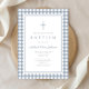 Elegant Dusty Blue Gingham Boy Baptism Inbjudningar